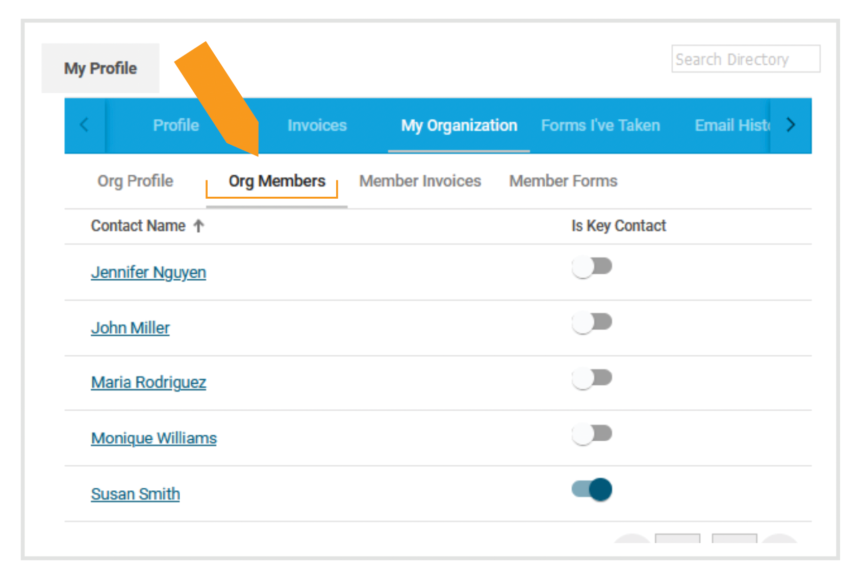 You may edit your information on this screen. You may also click on My Organization to see information about your group.